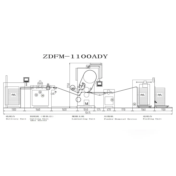 சுத்தம் செய்தல் மற்றும் லேமினேட் செய்தல்: மேற்பரப்பை சுத்தம் செய்வதற்காக காகிதம் முதலில் எலக்ட்ரோஸ்டேடிக் பவுடர் ரிமூவர் வழியாக செல்கிறது, பின்னர் சூடாக்கப்பட்ட உருளைகளின் கீழ் ஒரு பசை-பூசிய படத்துடன் (அல்லது முன்-கோட் படம்) துல்லியமாக லேமினேட் செய்யப்படுகிறது.